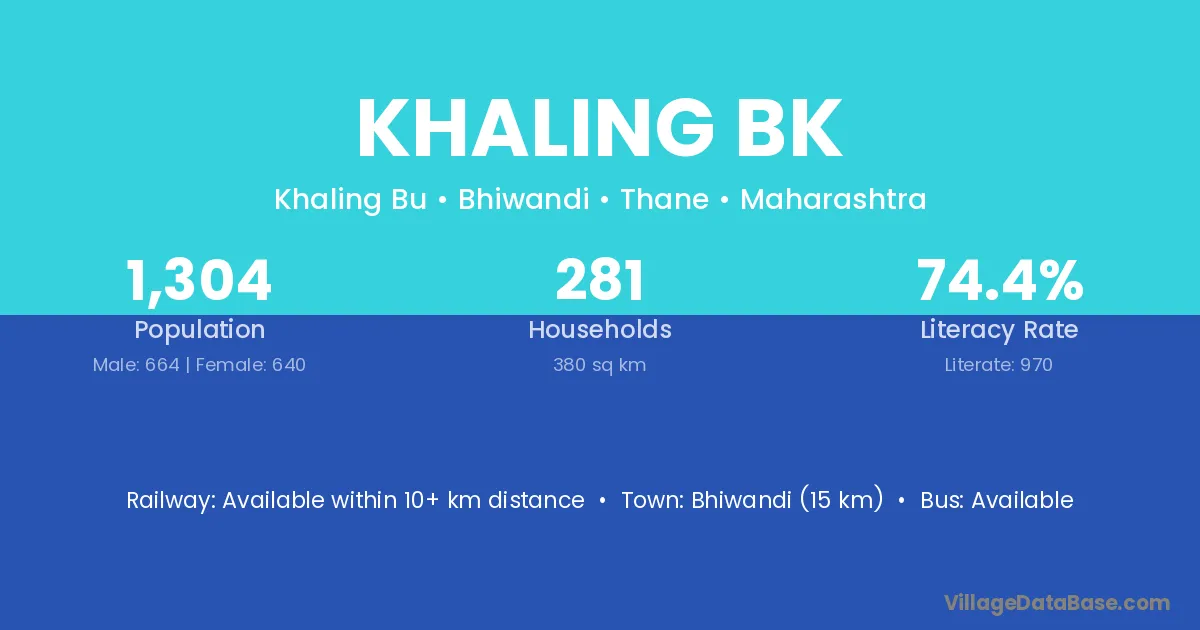 Bhiwandi (15 km) is the nearest town to Khaling Bk village for major economic activities and is located approximately 15 km away.