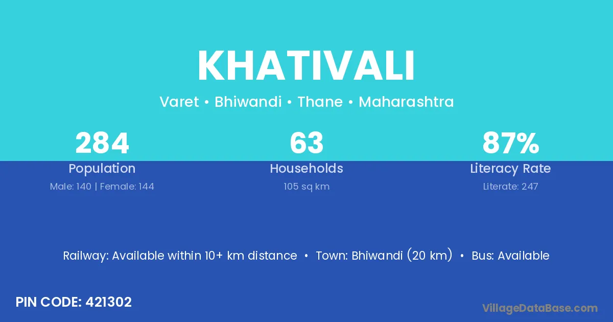Bhiwandi (20 km) is the nearest town to Khativali village for major economic activities and is located approximately 20 km away.