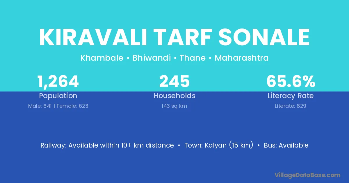 Kiravali Tarf Sonale village has a total population of 1,264 people, of which 641 are males and 623 are females.