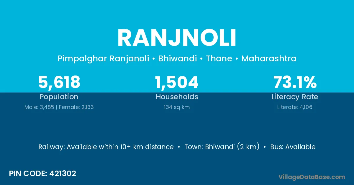 Bhiwandi (2 km) is the nearest town to Ranjnoli village for major economic activities and is located approximately 2 km away.