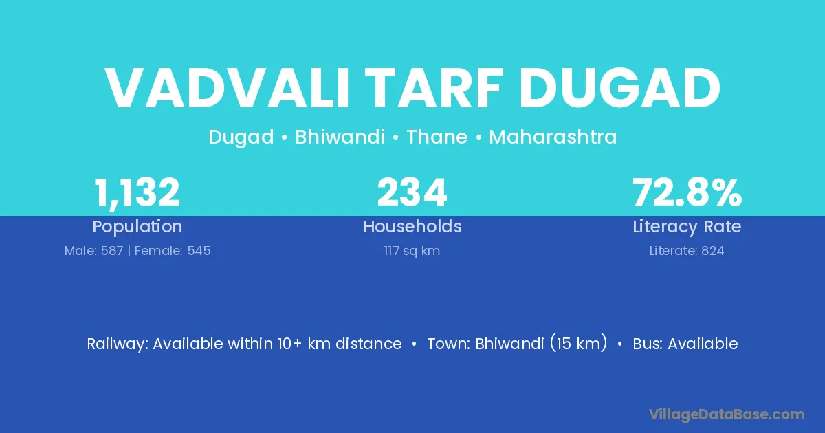Vadvali Tarf Dugad village has a total population of 1,132 people, of which 587 are males and 545 are females.