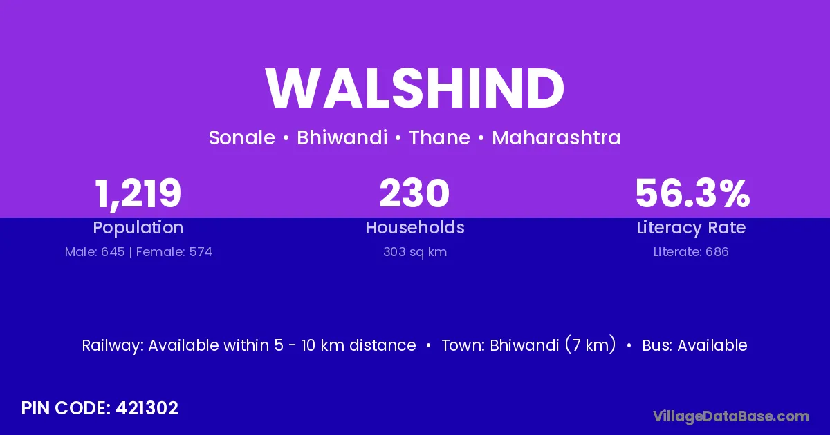 Bhiwandi (7 km) is the nearest town to Walshind village for major economic activities and is located approximately 7 km away.