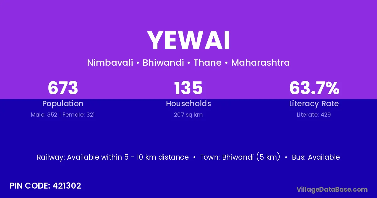 Bhiwandi (5 km) is the nearest town to Yewai village for major economic activities and is located approximately 5 km away.