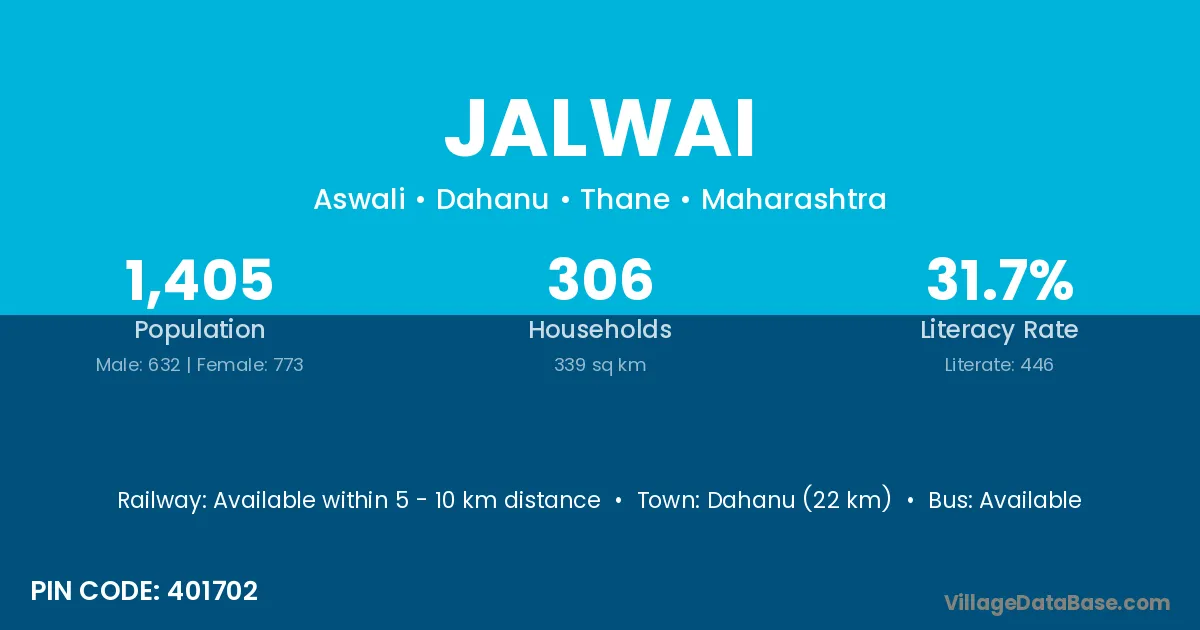 Dahanu (22 km) is the nearest town to Jalwai village for major economic activities and is located approximately 22 km away.