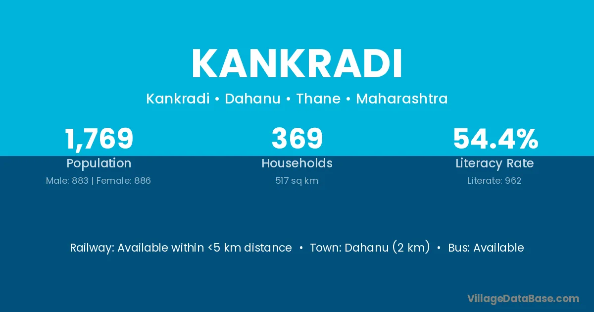 Dahanu (2 km) is the nearest town to Kankradi village for major economic activities and is located approximately 2 km away.