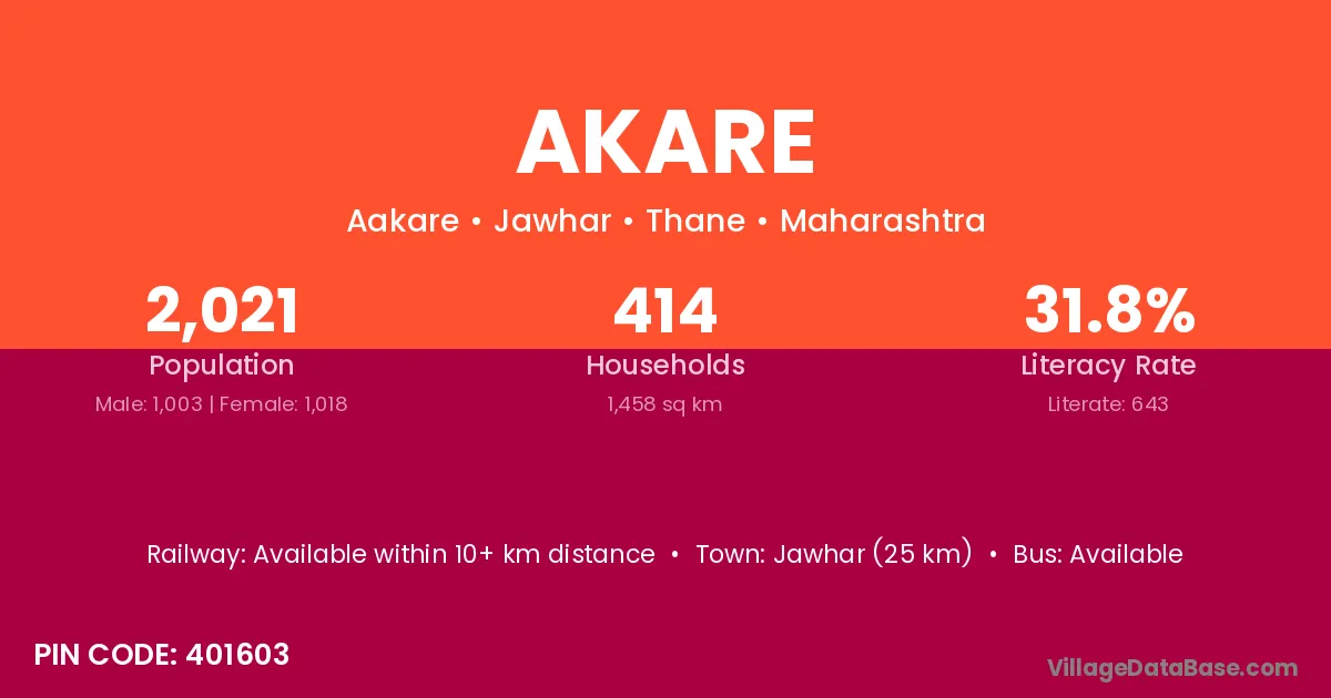 Jawhar (25 km) is the nearest town to Akare village for major economic activities and is located approximately 25 km away.