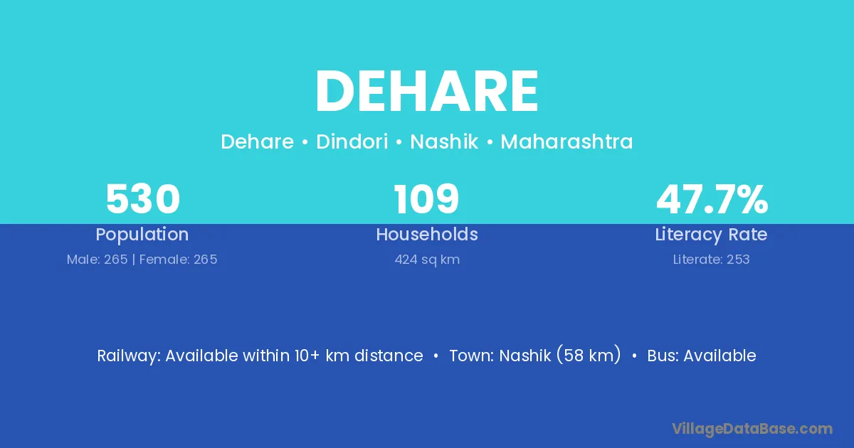 Jawhar (15 km) is the nearest town to Dehare village for major economic activities and is located approximately 15 km away.