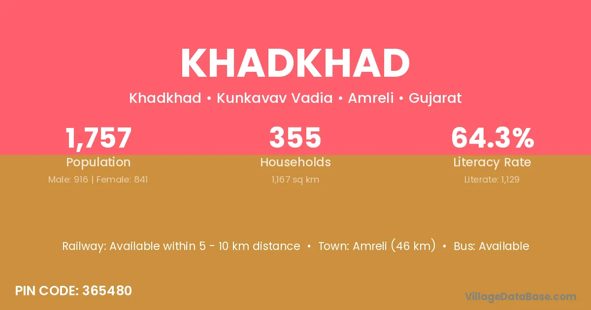 The literacy rate of Khadkhad village is 51.76%. Male literacy stands at 60.25% and female literacy at 44.17%.