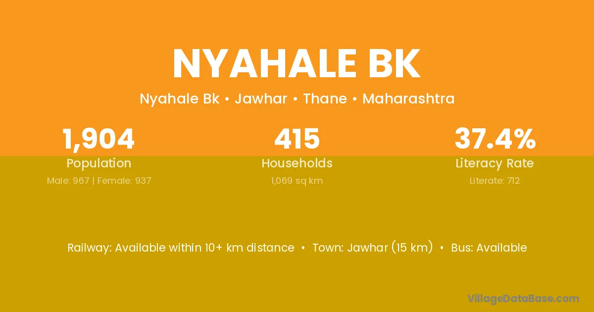 Jawhar (15 km) is the nearest town to Nyahale Bk village for major economic activities and is located approximately 15 km away.
