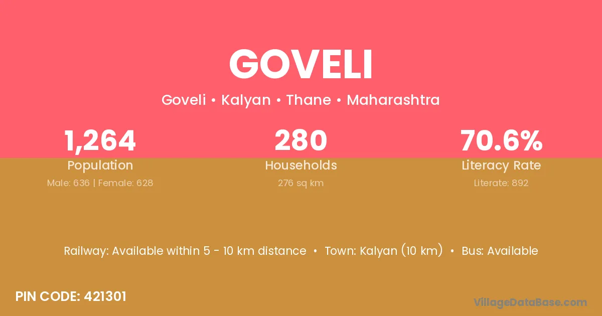 Kalyan (10 km) is the nearest town to Goveli village for major economic activities and is located approximately 10 km away.