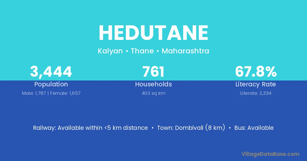 Dombivali (8 km) is the nearest town to Hedutane village for major economic activities and is located approximately 8 km away.