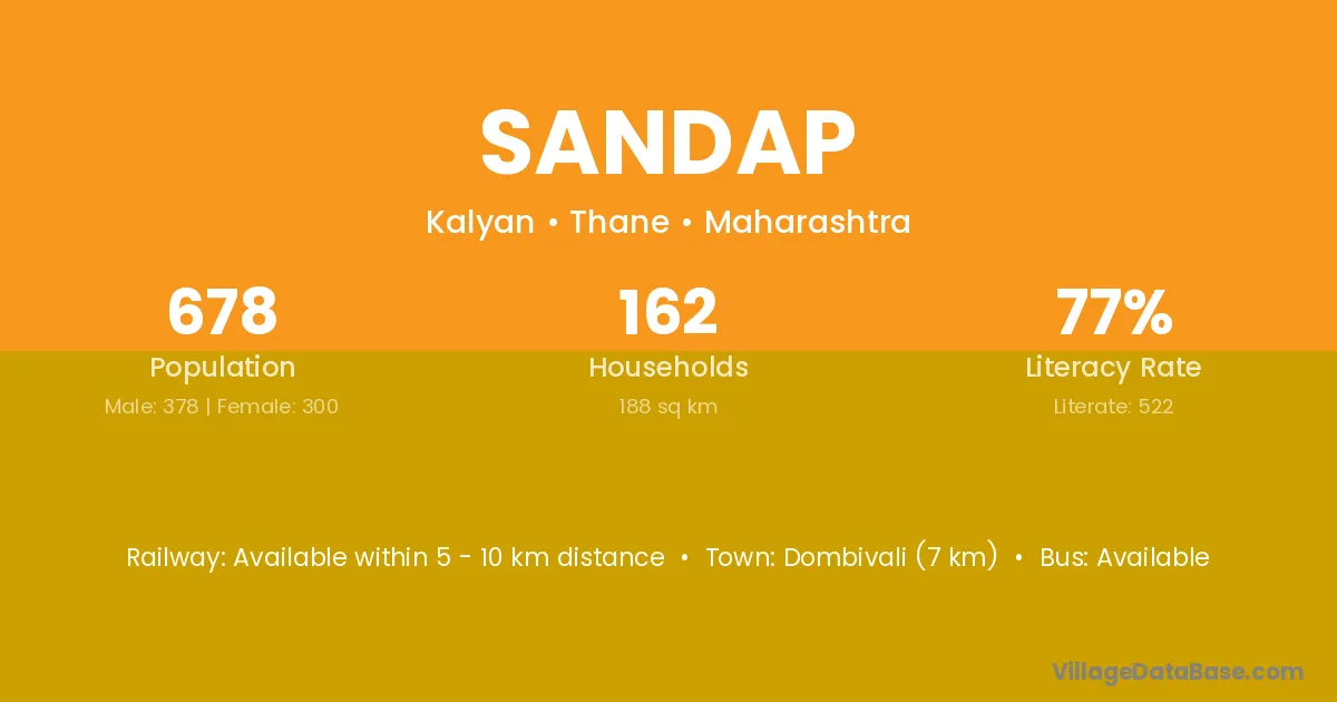 Dombivali (7 km) is the nearest town to Sandap village for major economic activities and is located approximately 7 km away.
