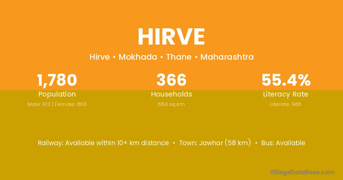 Jawhar (58 km) is the nearest town to Hirve village for major economic activities and is located approximately 58 km away.