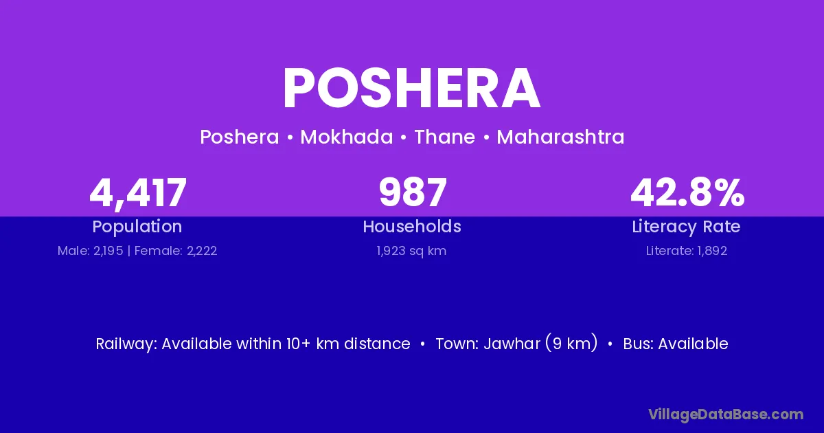 Jawhar (9 km) is the nearest town to Poshera village for major economic activities and is located approximately 9 km away.