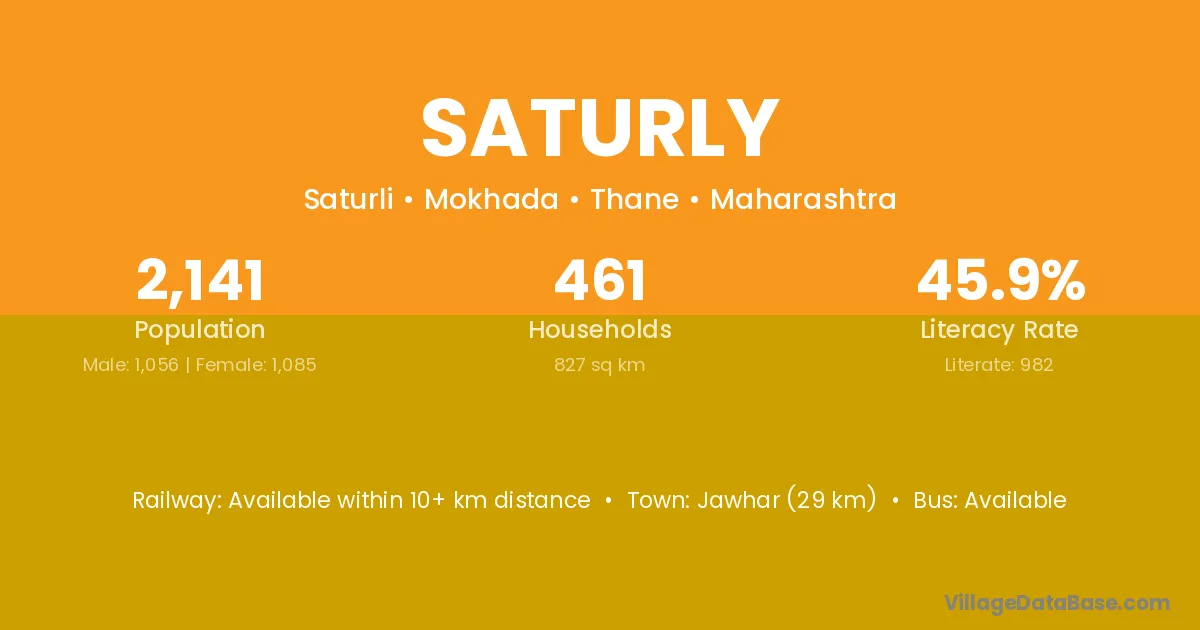 Jawhar (29 km) is the nearest town to Saturly village for major economic activities and is located approximately 29 km away.