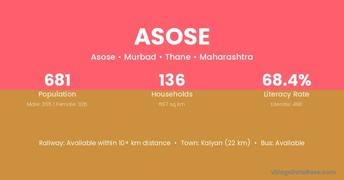 Kalyan (22 km) is the nearest town to Asose village for major economic activities and is located approximately 22 km away.