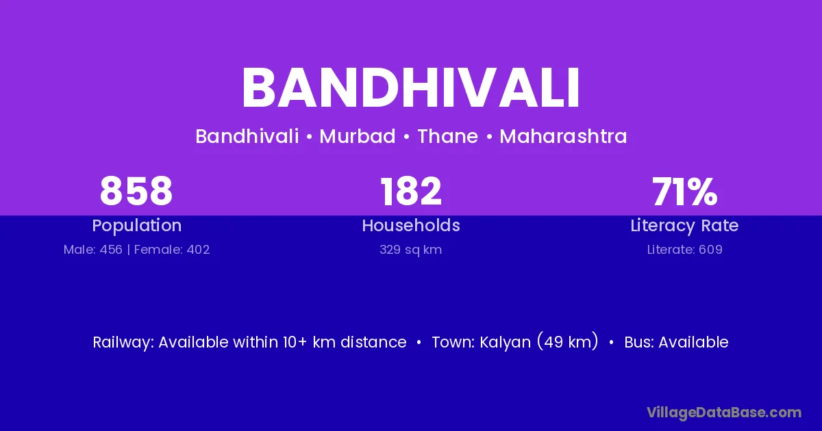 Kalyan (49 km) is the nearest town to Bandhivali village for major economic activities and is located approximately 49 km away.