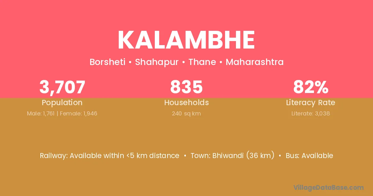 Kalyan (51 km) is the nearest town to Kalambhe village for major economic activities and is located approximately 51 km away.