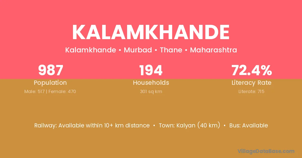 Kalyan (40 km) is the nearest town to Kalamkhande village for major economic activities and is located approximately 40 km away.