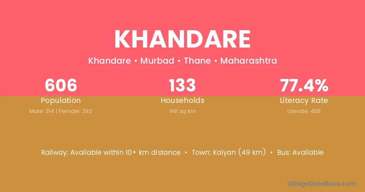 Kalyan (49 km) is the nearest town to Khandare village for major economic activities and is located approximately 49 km away.