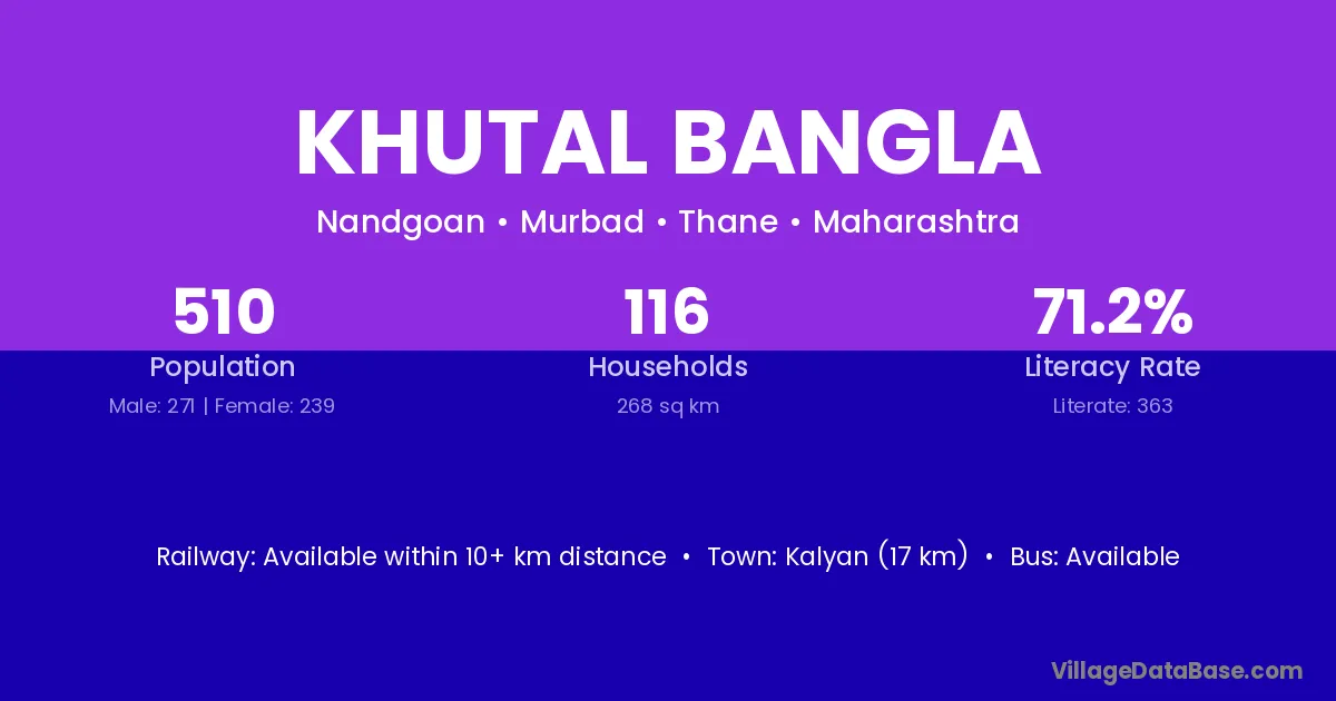Khutal Bangla village has a total population of 510 people, of which 271 are males and 239 are females.