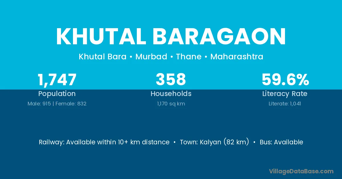 Kalyan (82 km) is the nearest town to Khutal Baragaon village for major economic activities and is located approximately 82 km away.