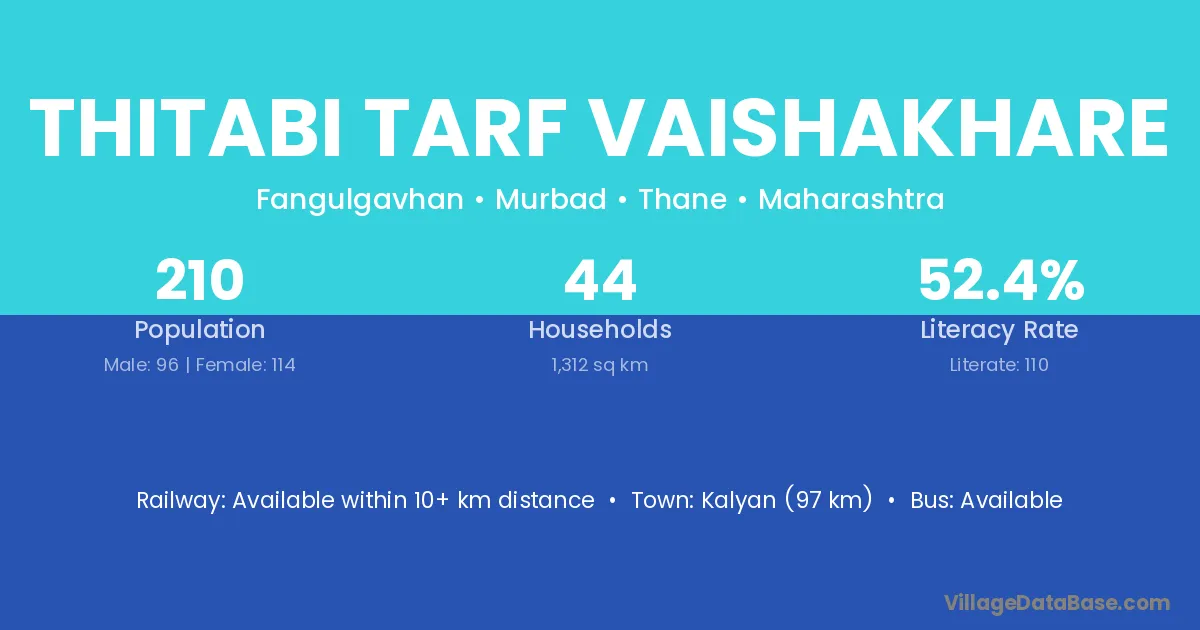 Thitabi Tarf Vaishakhare village has a total population of 210 people, of which 96 are males and 114 are females.