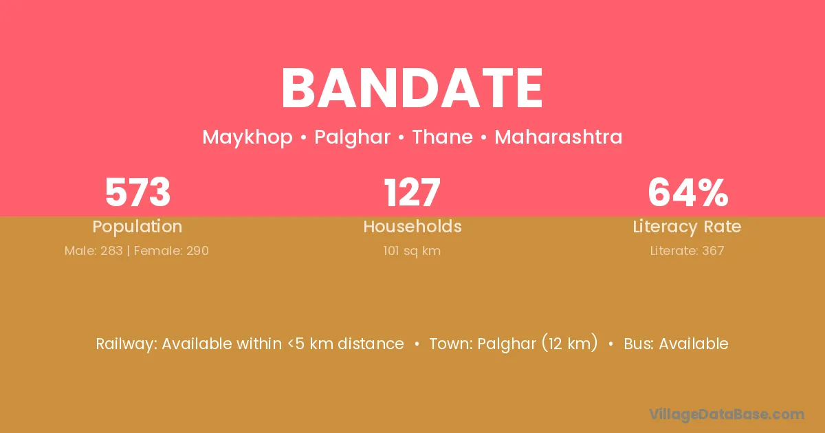 Palghar (12 km) is the nearest town to Bandate village for major economic activities and is located approximately 12 km away.