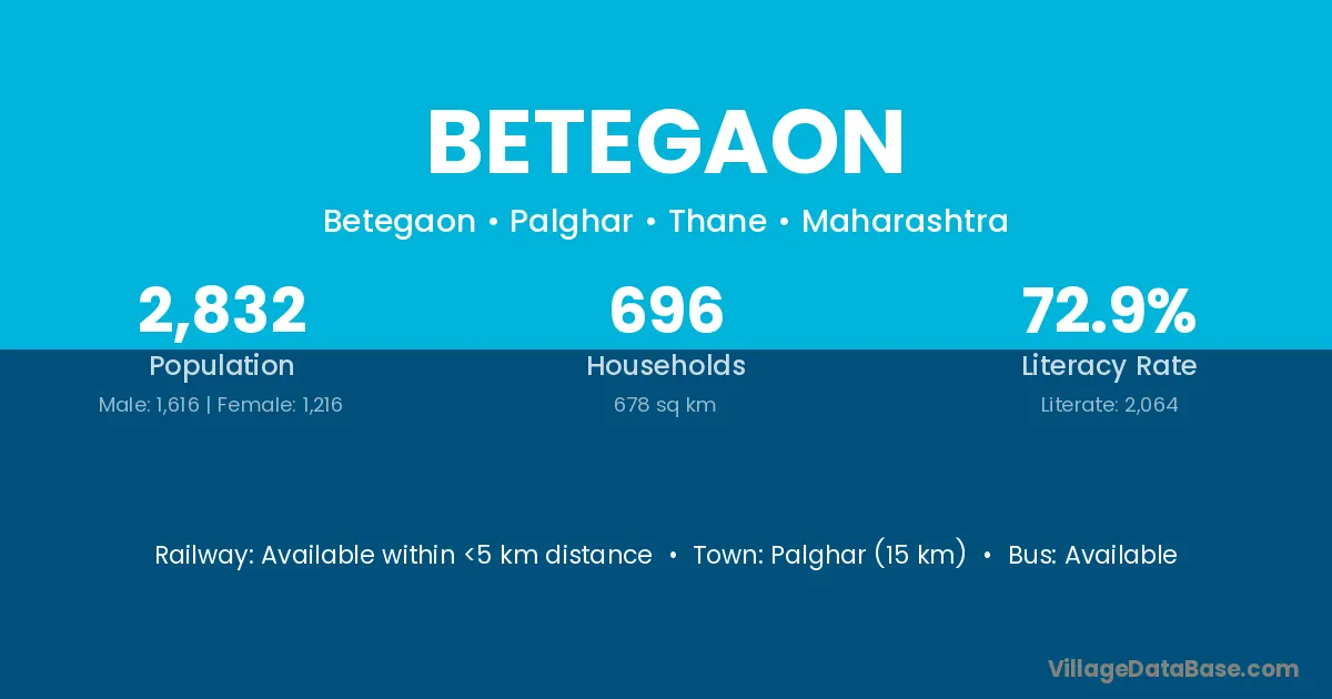 Palghar (15 km) is the nearest town to Betegaon village for major economic activities and is located approximately 15 km away.