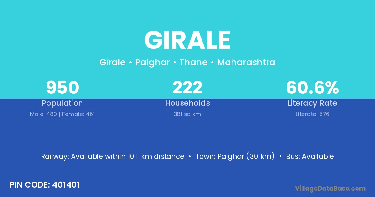 Palghar (30 km) is the nearest town to Girale village for major economic activities and is located approximately 30 km away.