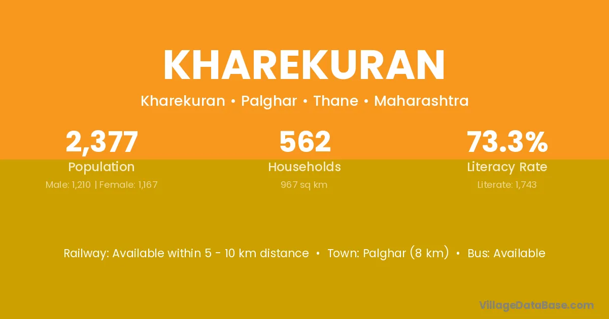 Palghar (8 km) is the nearest town to Kharekuran village for major economic activities and is located approximately 8 km away.
