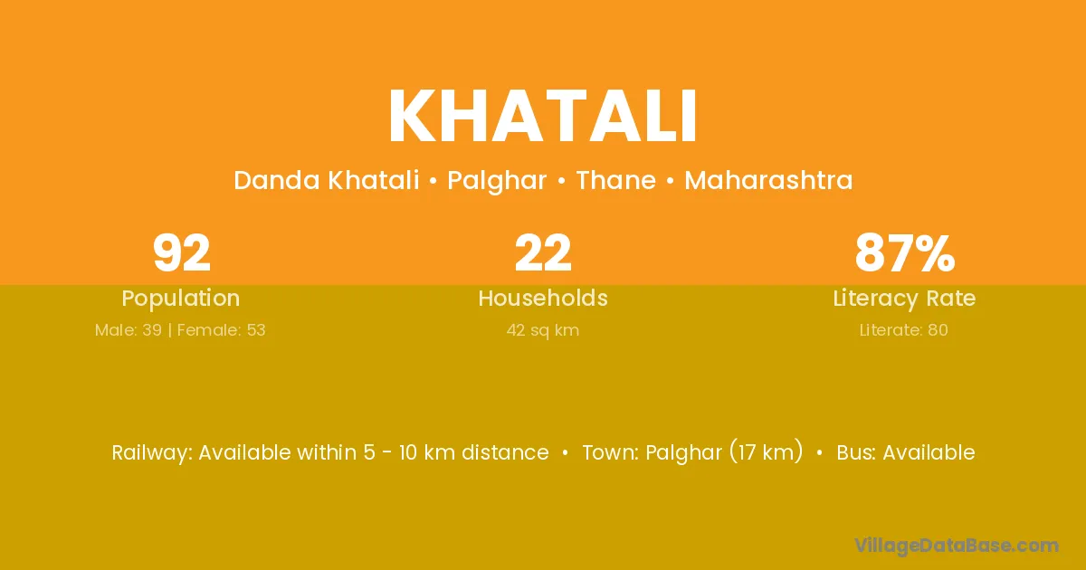 Palghar (17 km) is the nearest town to Khatali village for major economic activities and is located approximately 17 km away.