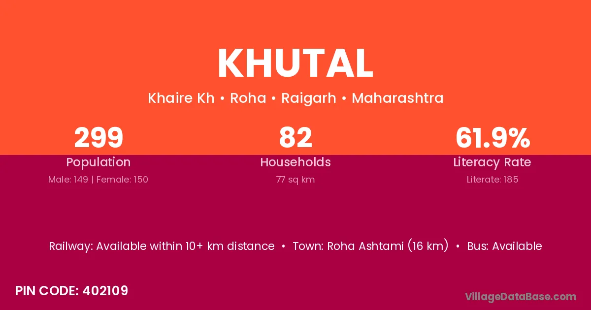 Palghar (21 km) is the nearest town to Khutal village for major economic activities and is located approximately 21 km away.