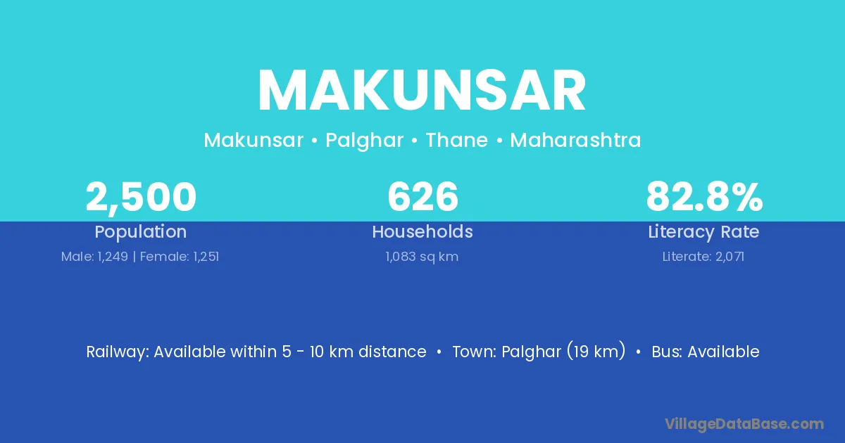 Palghar (19 km) is the nearest town to Makunsar village for major economic activities and is located approximately 19 km away.
