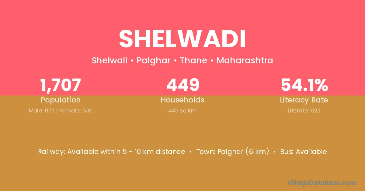 Palghar (6 km) is the nearest town to Shelwadi village for major economic activities and is located approximately 6 km away.
