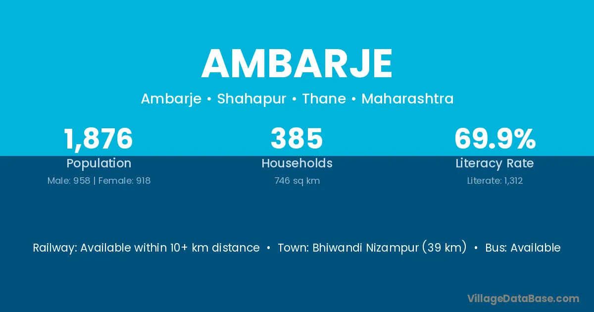 Bhiwandi Nizampur (39 km) is the nearest town to Ambarje village for major economic activities and is located approximately 39 km away.