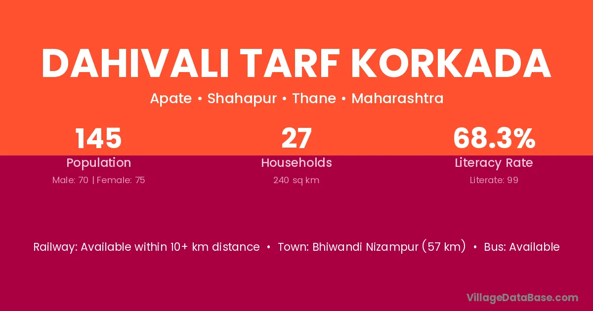 Dahivali Tarf Korkada village has a total population of 145 people, of which 70 are males and 75 are females.