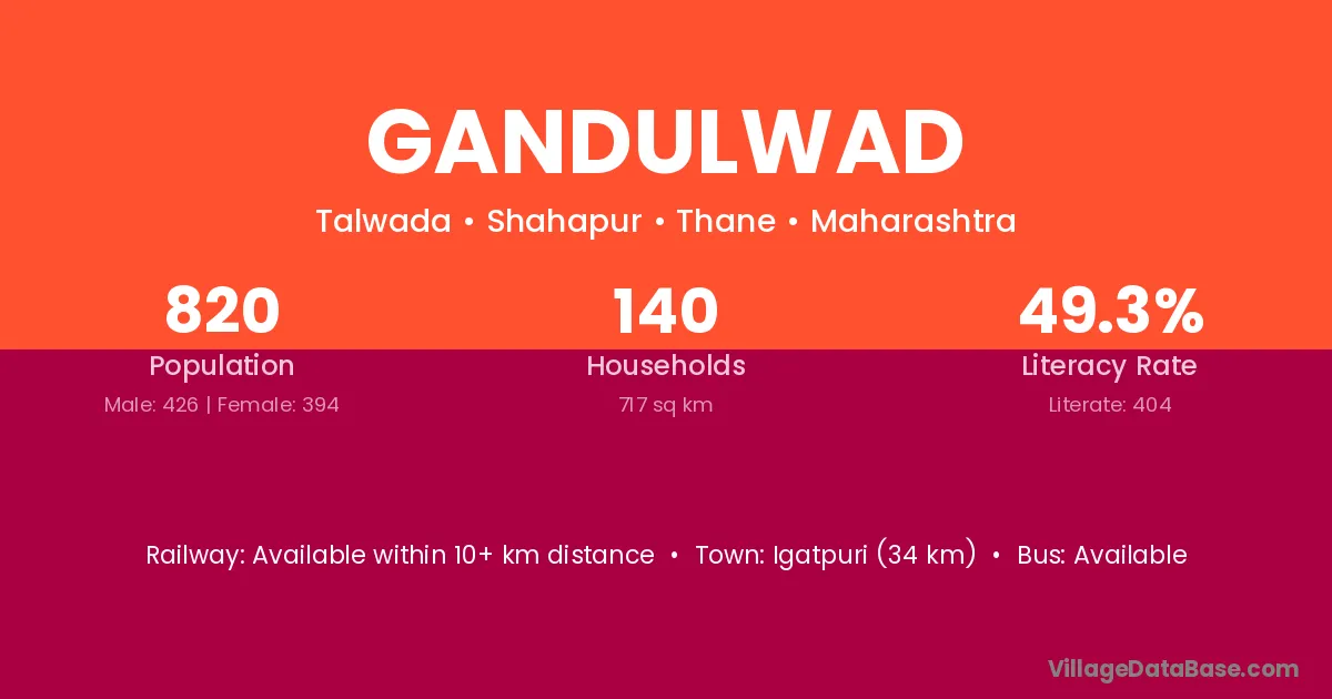 Gandulwad village has a total population of 820 people, of which 426 are males and 394 are females.