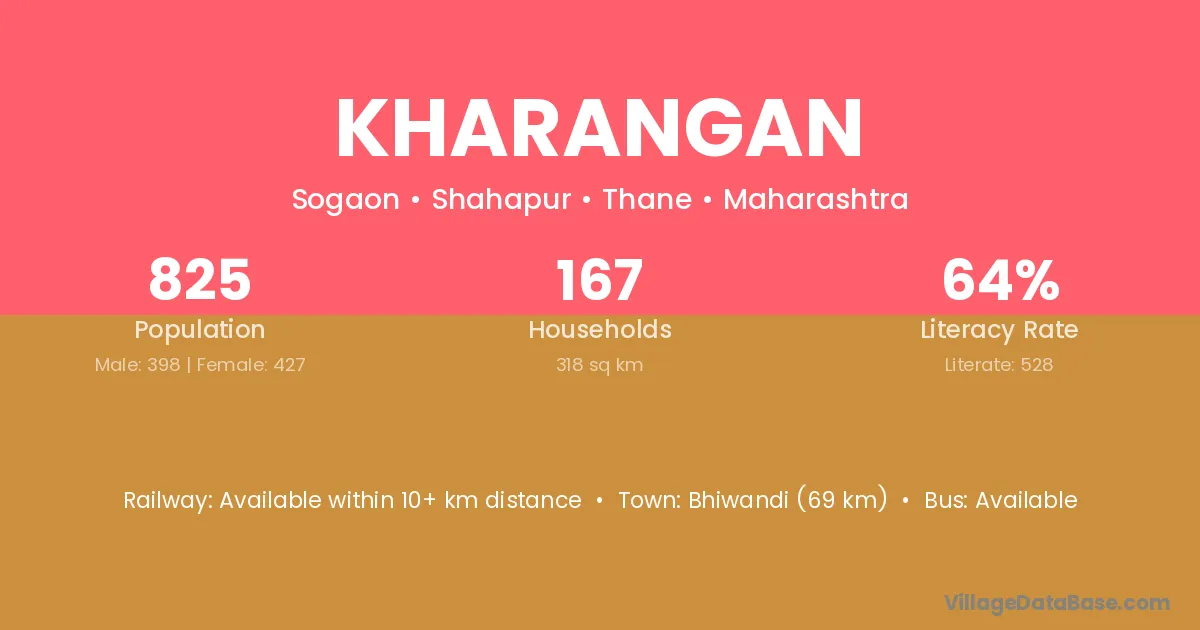 Bhiwandi (69 km) is the nearest town to Kharangan village for major economic activities and is located approximately 69 km away.