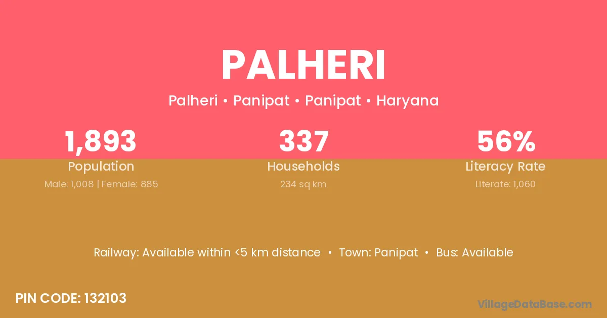 The literacy rate of Palheri village is 41.88%. Male literacy stands at 46.79% and female literacy at 37.09%.