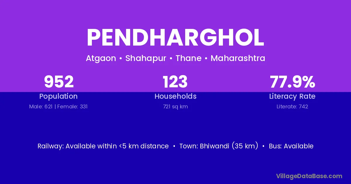 Bhiwandi (35 km) is the nearest town to Pendharghol village for major economic activities and is located approximately 35 km away.