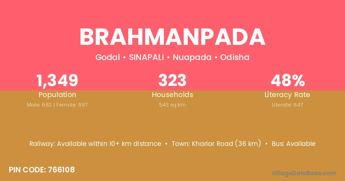 Brahmanpada village has a total population of 2,571 people, of which 1,241 are males and 1,330 are females.