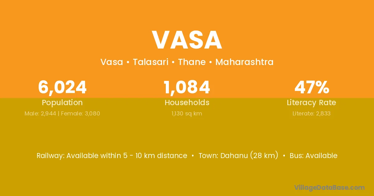 Dahanu (28 km) is the nearest town to Vasa village for major economic activities and is located approximately 28 km away.
