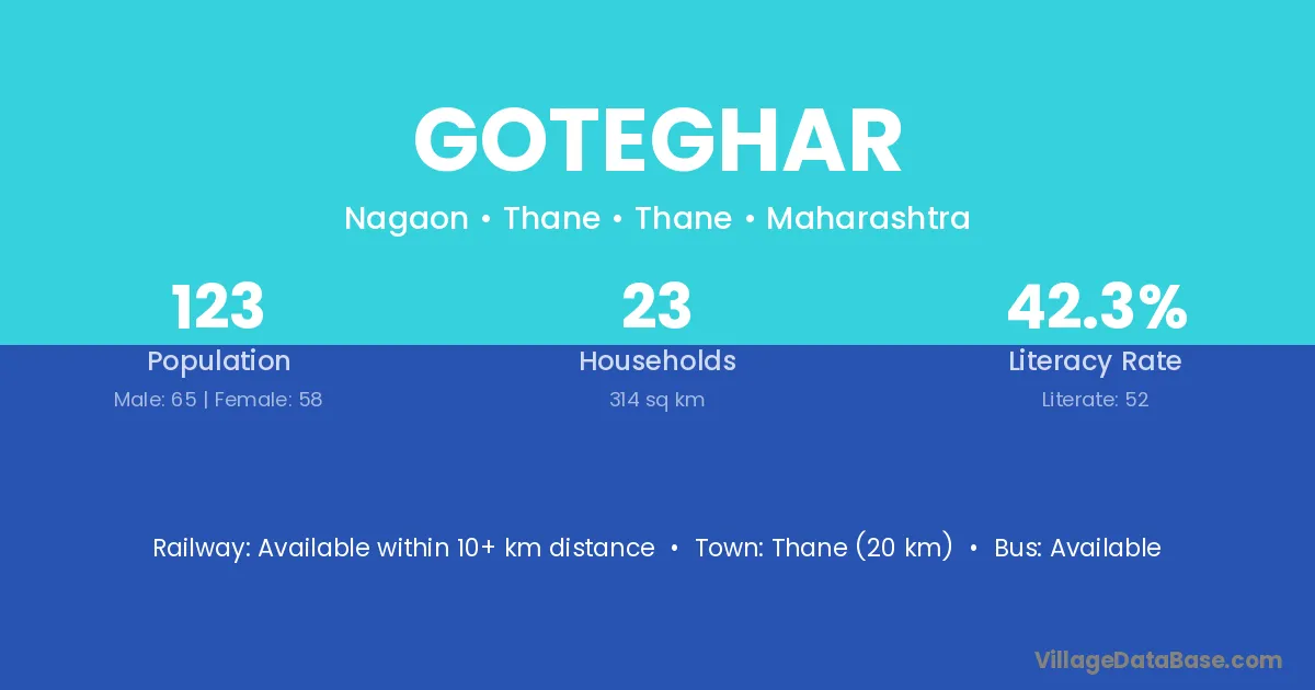 Thane (20 km) is the nearest town to Goteghar village for major economic activities and is located approximately 20 km away.