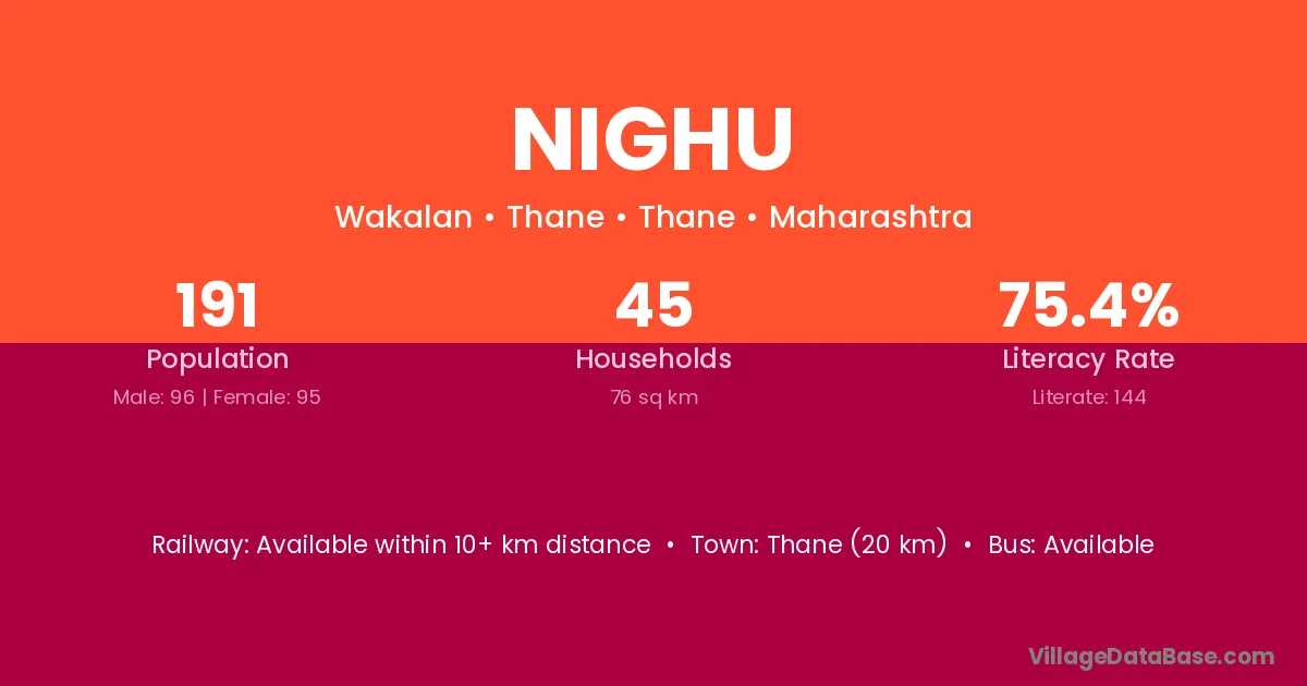 Thane (20 km) is the nearest town to Nighu village for major economic activities and is located approximately 20 km away.