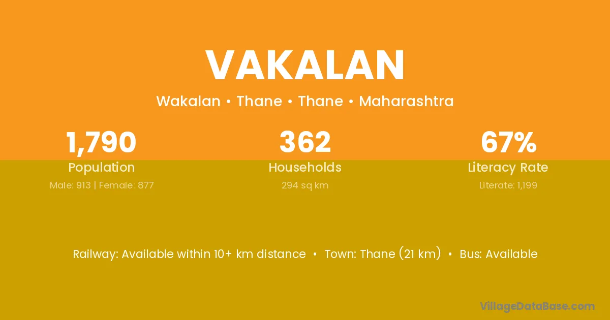Thane (21 km) is the nearest town to Vakalan village for major economic activities and is located approximately 21 km away.