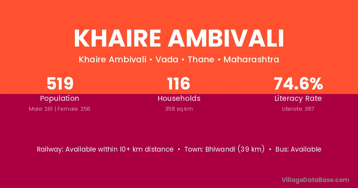 Khaire Ambivali village has a total population of 519 people, of which 261 are males and 258 are females.