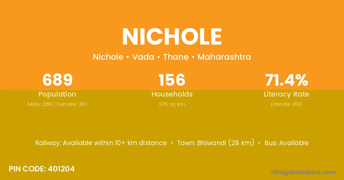 Bhiwandi (28 km) is the nearest town to Nichole village for major economic activities and is located approximately 28 km away.