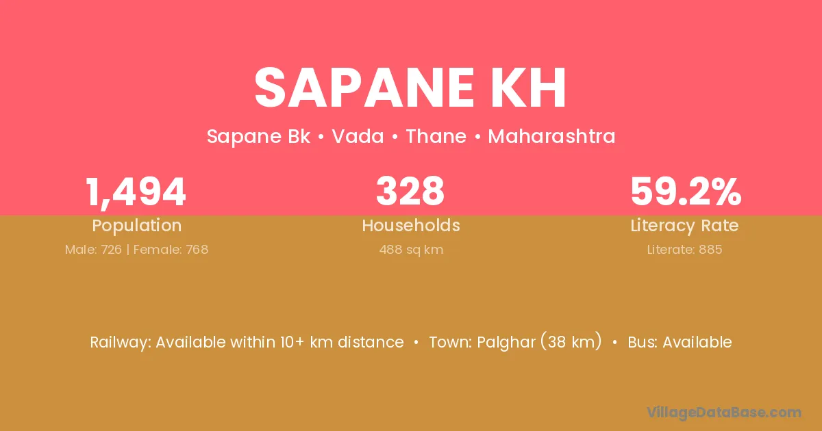 Palghar (38 km) is the nearest town to Sapane Kh village for major economic activities and is located approximately 38 km away.