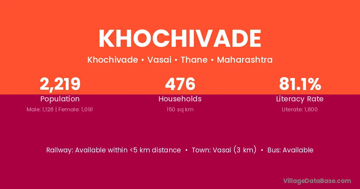Vasai (3 km) is the nearest town to Khochivade village for major economic activities and is located approximately 3 km away.